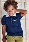 Mayoral Boys Rear Logo Polo Shirt, Navy