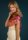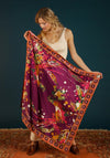 Powder Swirling Pheasant Print Satin Scarf, Purple Multi