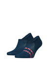 Tommy Hilfiger 2 Pack Stripe Anti-Slip No Show Socks, Navy